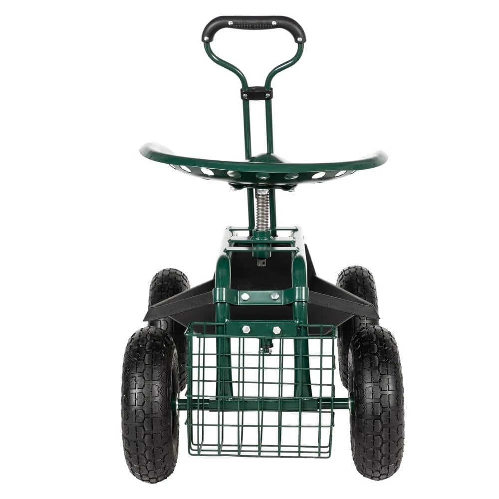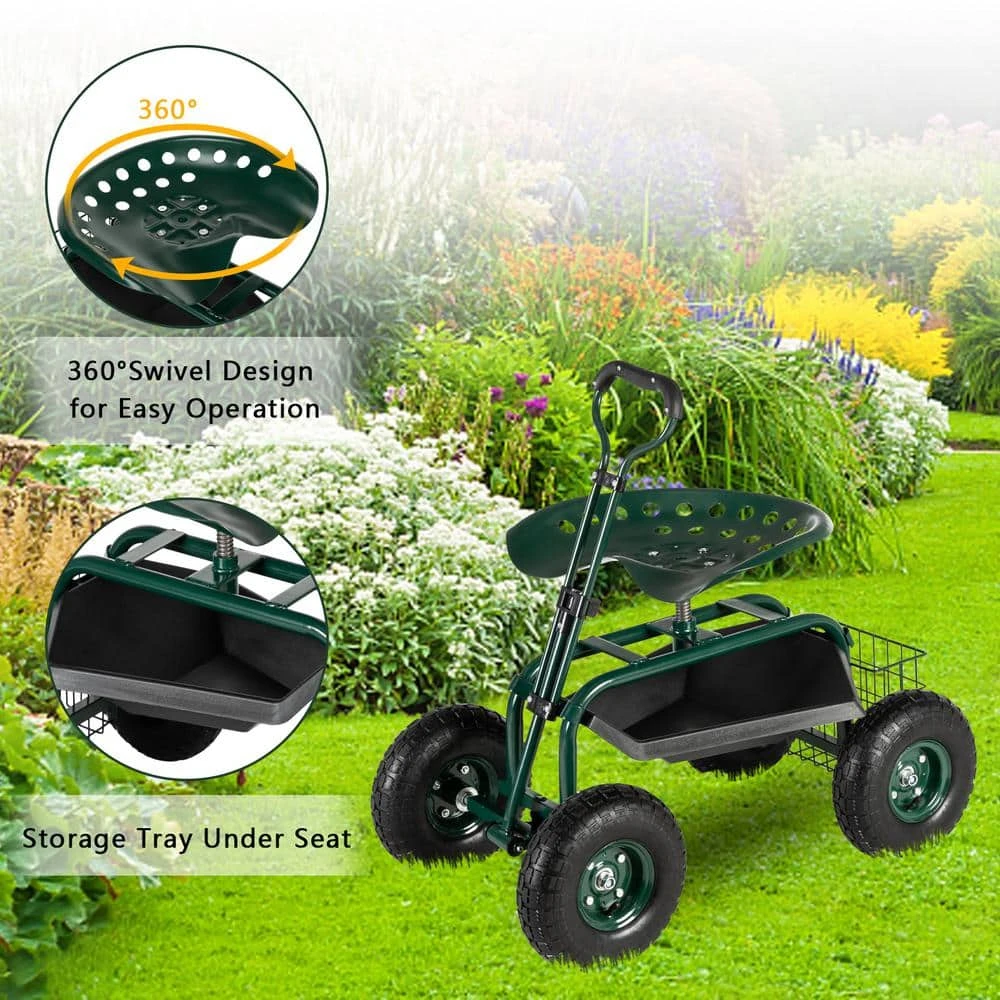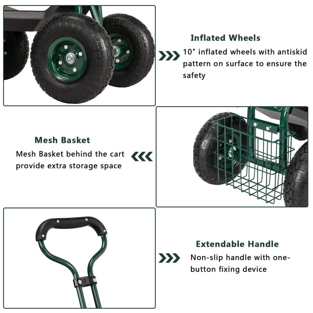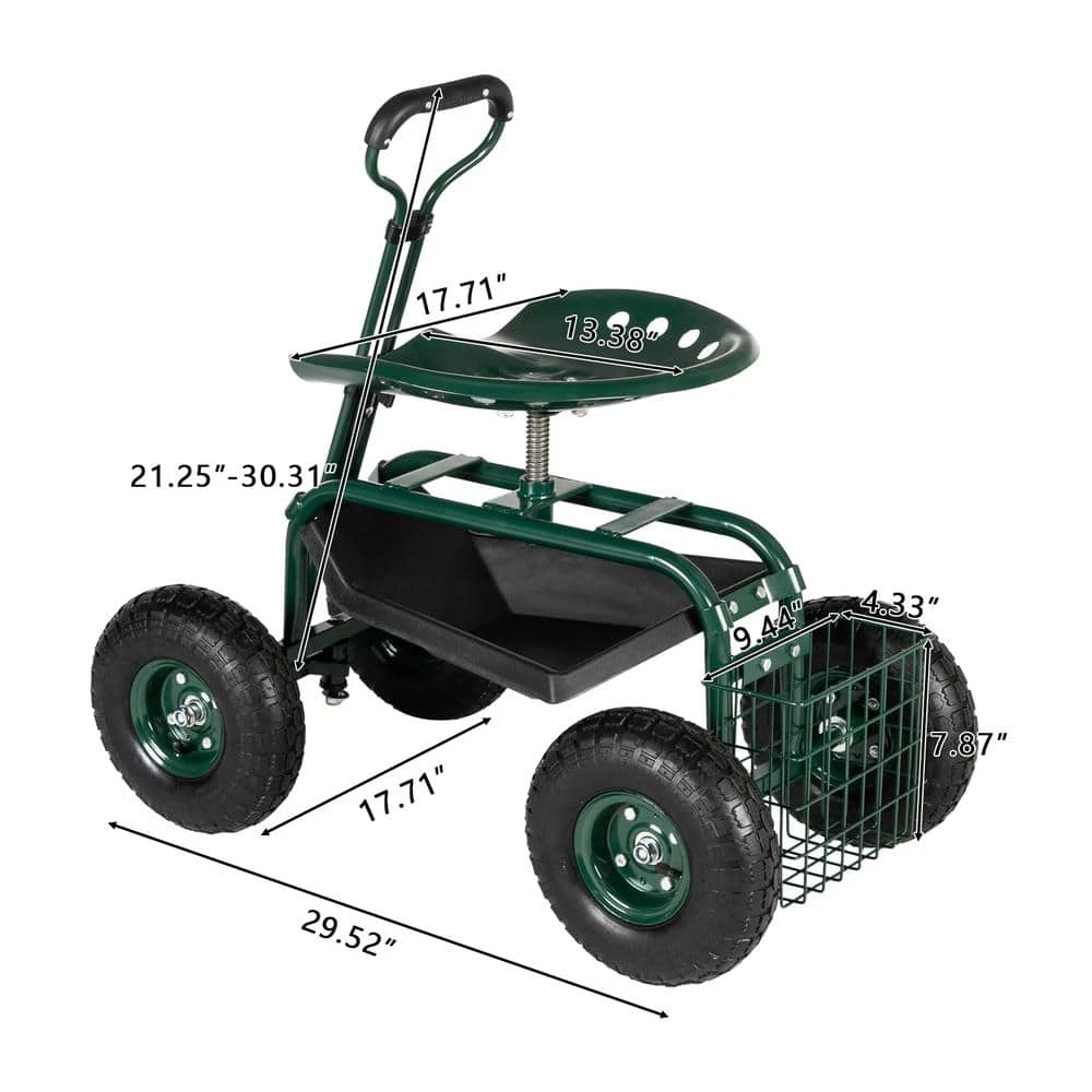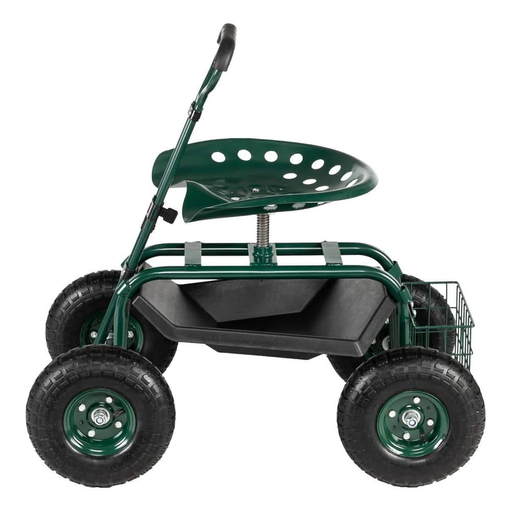 This garden cart with solid steel frame and extendable handle is both practical and modern, suitable for all kinds of gardens. This trolley is equipped with a large seat, which is ergonomic and comfortable. There is a grocery basket and tool tray under the seat, which provides convenience for you to garden conveniently and efficiently.