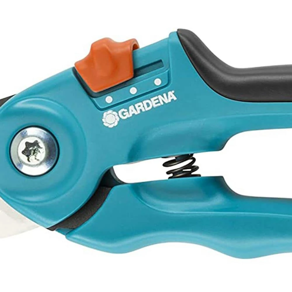 Keep your indoor or outdoor garden looking its best with this 22 MM Stainless Steel Adjustable Diameter Garden Secateurs from GARDENA. This gardening tool has a versatile design that can be adjusted between 2 handle widths and 2 cutting diameters to accommodate smaller or larger hands and different sized branches. with a precision ground upper blade and stainless steel lower blade, these durable garden cutters are perfect for trimming flowers and cutting young shoots and branches to keep your garden look its best. The ergonomically designed handles are ideal for use with 1 hand and have a soft upper handle portion to keep your hand in place. When you’re done gardening, these blue secateurs feature a safety lock to keep the blades closed when stored in your shed or garage. Trim fresh flowers and freshen up your garden with the 22 MM Stainless Steel Adjustable Diameter Garden Secateurs from GARDENA.
