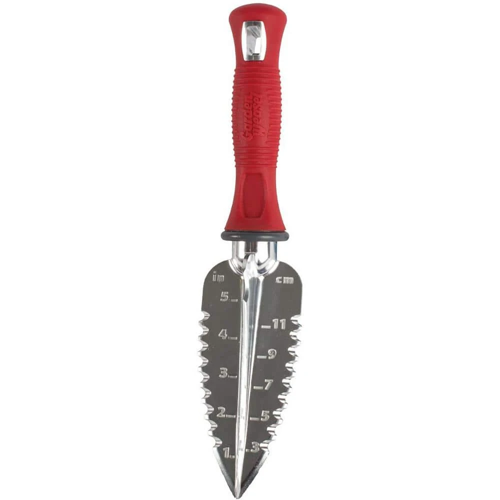 - Tool comes equipped with measurements on the blade in both inches and centimeters for more precise planting