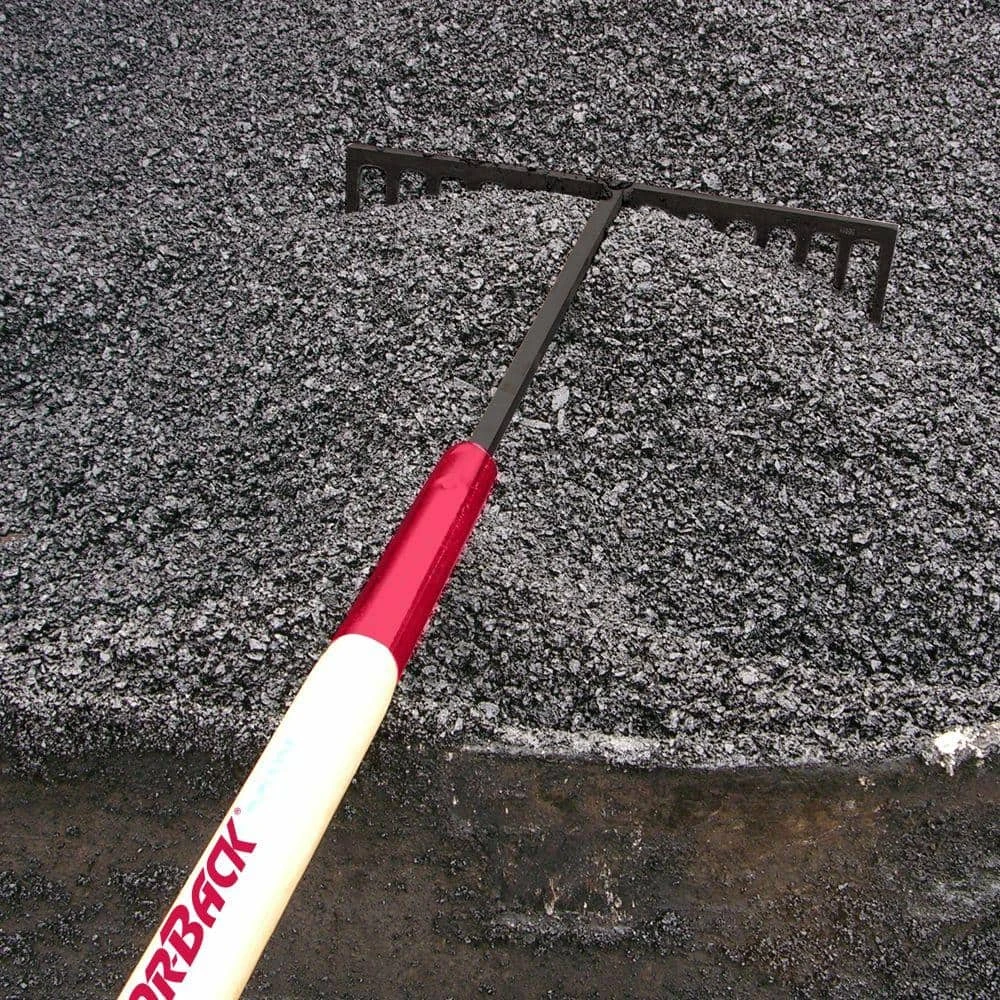 This heavy-duty asphalt rake is designed with a long metal shaft, making it a perfect choice for contractors and professionals. Use the metal shaft in hot asphalt to spread. Its 14 in. steel tines are made with a heavy pattern. It is made from one forged head. Its North American hardwood handle with a contoured design adds strength and durability. This rake will stand up to years of use.