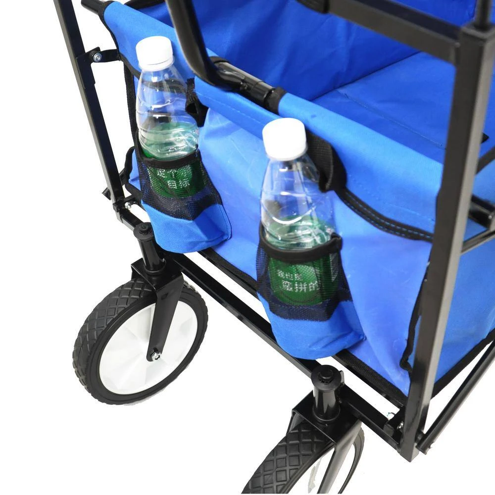 With a steel frame and 600D PVC fabric, this folding station wagon is very strong and durable. The foldable cart is so portable that it can be folded and stored in the trunk of a car, closet or garage when not in use. Take it home and make your life more and more fun.