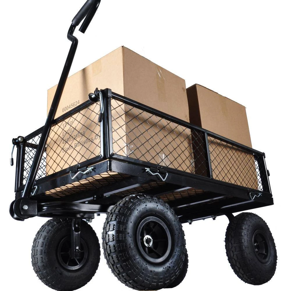 Wagon garden trucks make it easier to transport firewood, plants, chicken feed, potting soil and honeycombs. The detachable side on the foldable utility wagon increases versatility when carrying larger loads. The practical garden trolley bears 550 lbs. (about 249.5 kg), so it is strong enough to carry heavy work. You don’t have to drag heavy materials to the original place on multiple trips. Heavily reinforced steel frame, 180ยฐ steering range handle control and 10 in. (about 25.4 cm) pneumatic tires make this garden utility vehicle stable and ready to help you complete tasks in the yard.