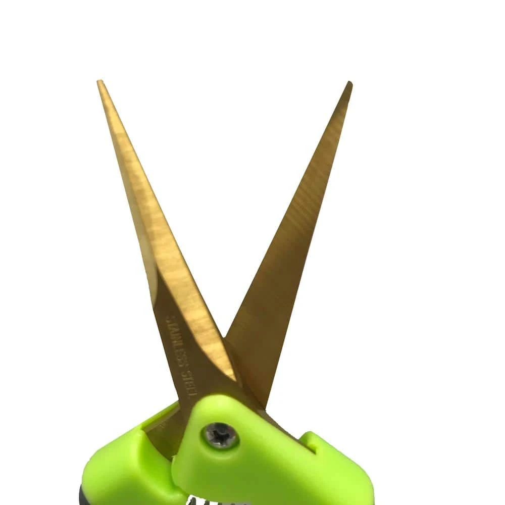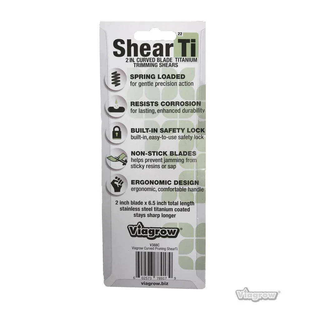The Viagrow Soft Grip Micro-Tip Pruning Shears with surgical grade no stick, anti-resin titanium coated curved blades are built to last no matter what you are trimming. The no-slip, soft comfort grip handle and durable precision spring reduces hand fatigue during use. The built-in safety lock will keep the razor-sharp blades locked when not in use. The corrosion resistant no stick titanium blades assure a long-lasting sharp blade for years of rust free use. The durable precision spring action will open and close the blades effortlessly and smoothly assuring easy fast strain free snipping. Comes in a pack of 3.