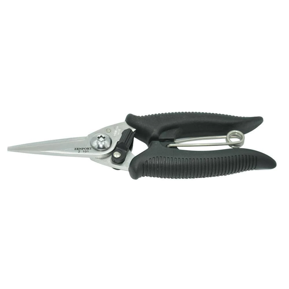 The Zenport Z101 is the perfect choice for multi-purpose cutting. Easily cut floral wire, screens, stems, zip ties, banding straps or packaging. Makes easy work of light pruning and trimming or deadheading and serrated blades grip floral stems. Shear is spring loaded to minimize hand strain and the blade lock an be operated in 1 hand.