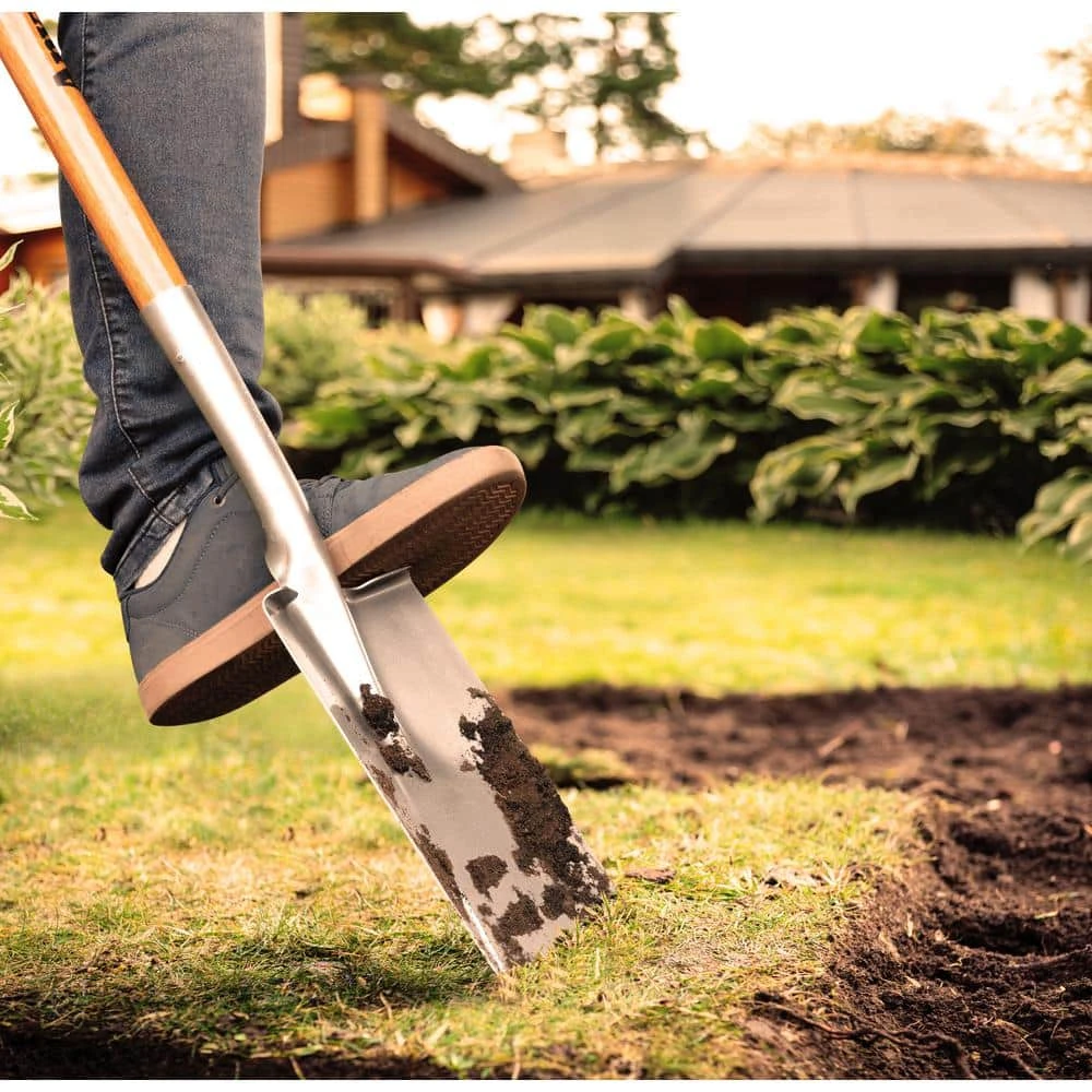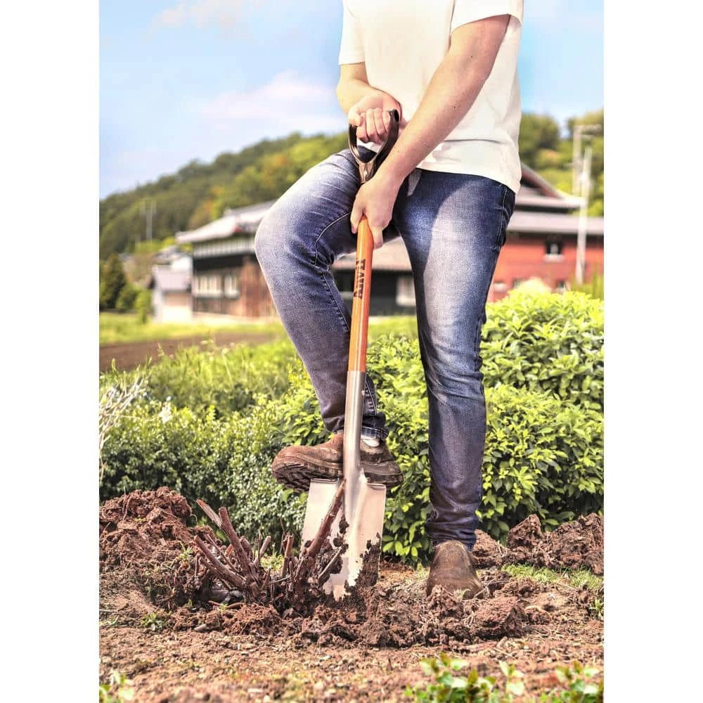 The Anvil wood handle garden spade shovel is made of a high-quality carbon steel and the head also features a foot step. It is a great tool for transplanting perennials. The straight edge on the blade cuts through sod and soil.