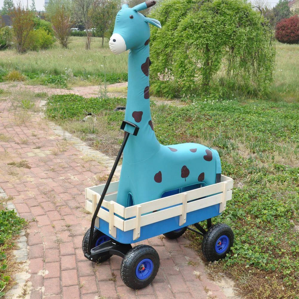 This big foot panel wagon has an all-steel construction, rugged air tires and wooden stake sides, which is great for your kids or grandkids to play with. The wagon can haul gardening tools or supplies in the yard! It has a large loading capacity of 176lbs. The extra-long handle is foldable under for easy storage. The wooden panels in the side are removable.