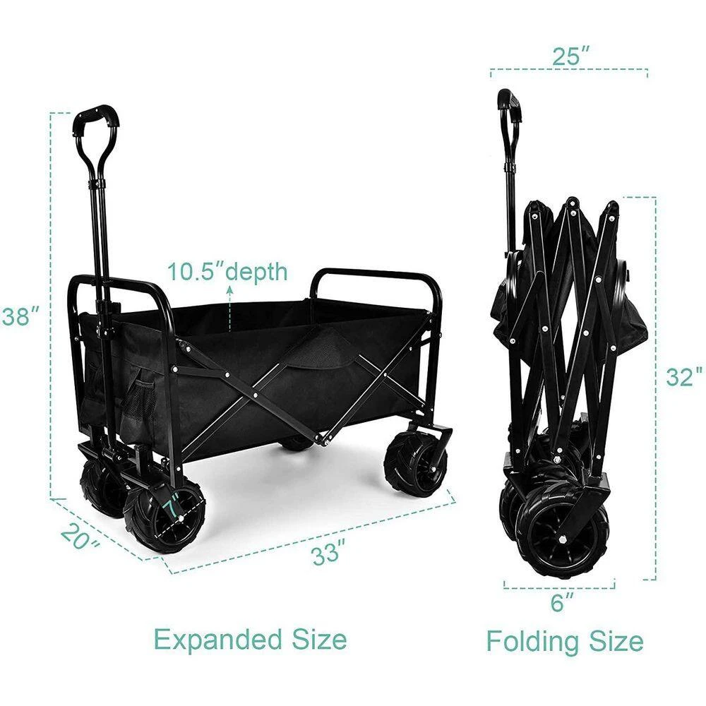 - Collapsible cart is equipped with extra-large tires with 7 in. of diameter, which can rotate in 360ยฐ, it can move smoothly and go anywhere