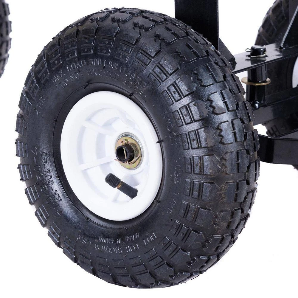 - Equipped with durable 10 in. Dia inflatable rubber wheels, it can absorb shock and ensure easy rolling on rough terrain