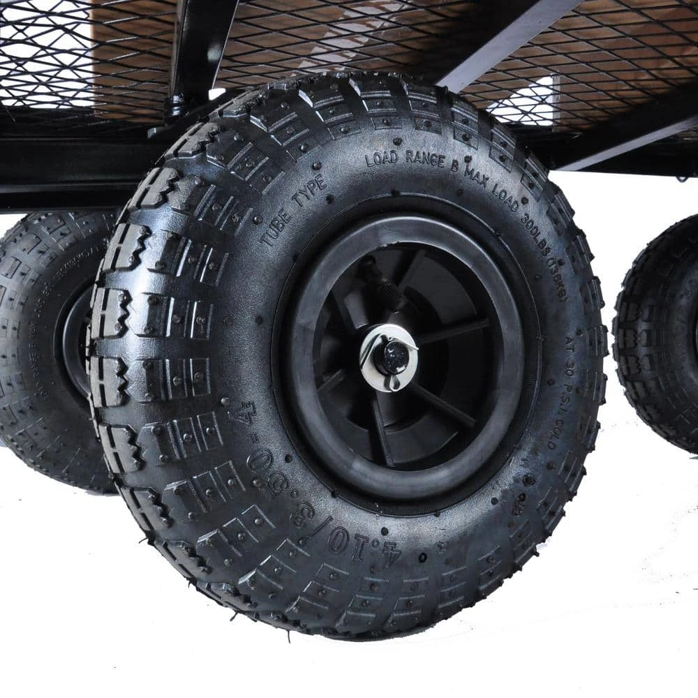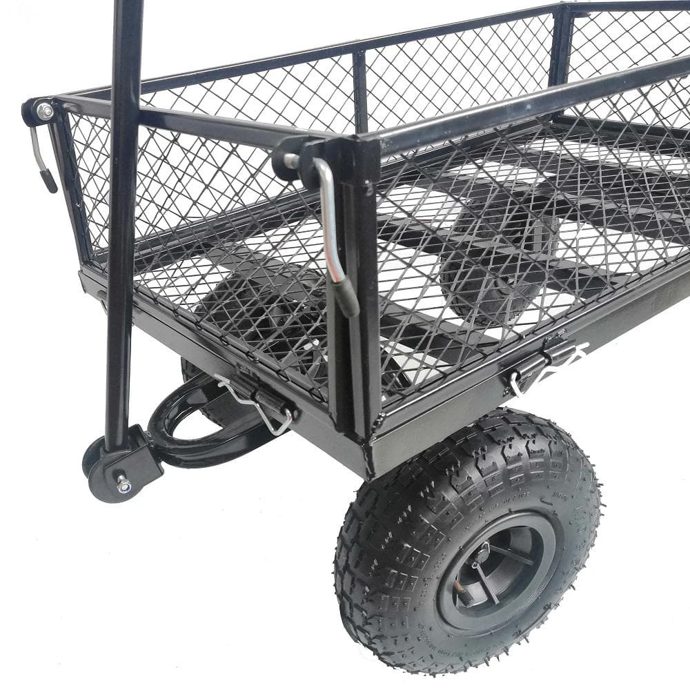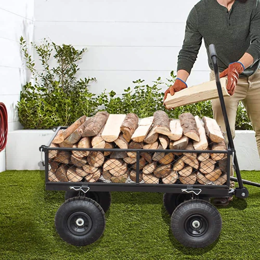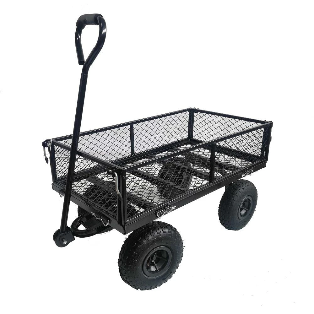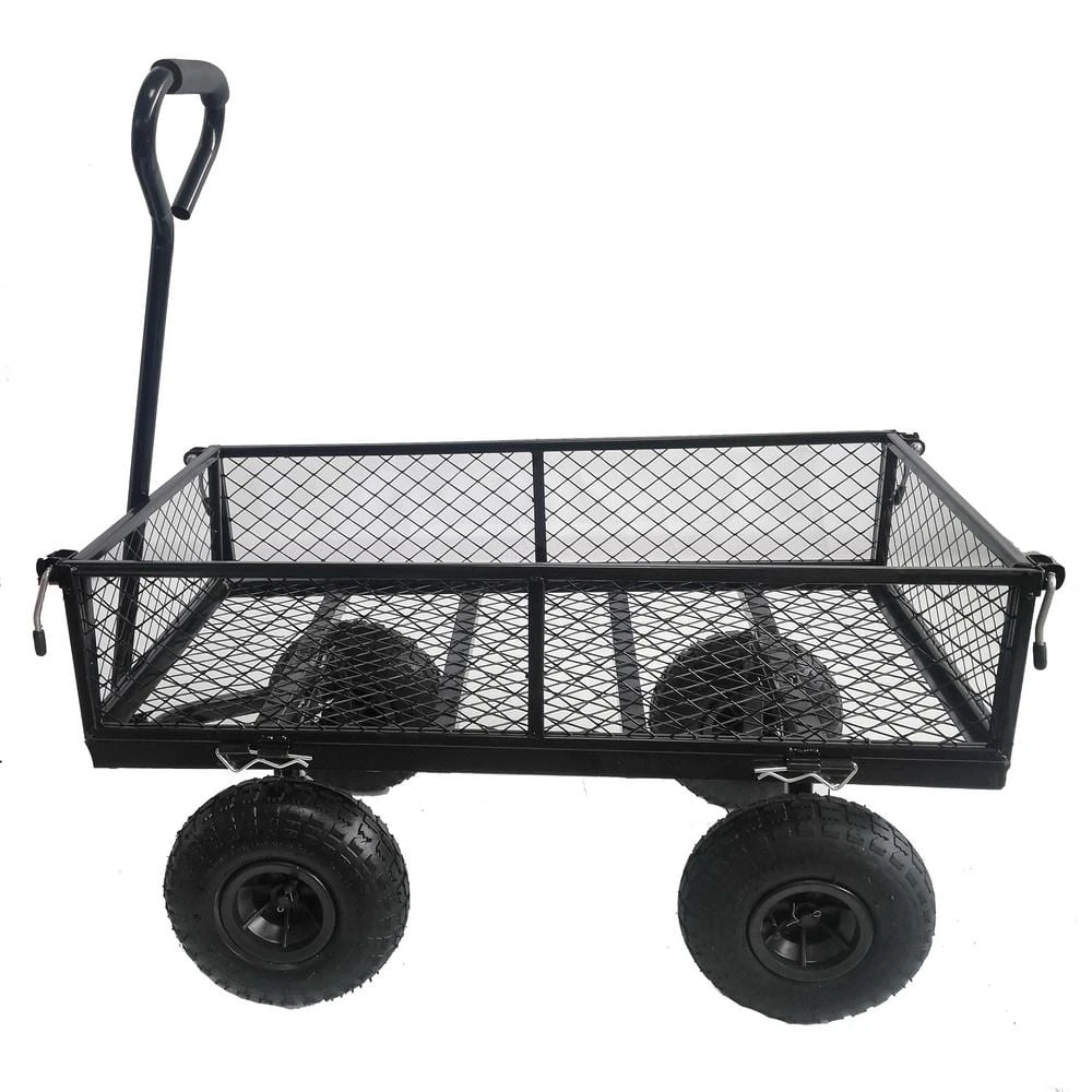Wagon Garden trucks make it easier to transport firewood, plants, chicken feed, potted soil and honeycombs. The detachable side on the foldable utility wagon increases versatility when carrying larger loads. The practical garden trolley bears 550 lbs. (about 249.5 kg), so it is strong enough to carry heavy work. You don’t have to drag heavy materials to the original place on multiple trips. Heavy reinforced steel frame, 180ยฐ steering range handle control and 10 in. (about 25.4 cm) pneumatic tires make this garden utility vehicle stable and ready to help you complete tasks in the yard.