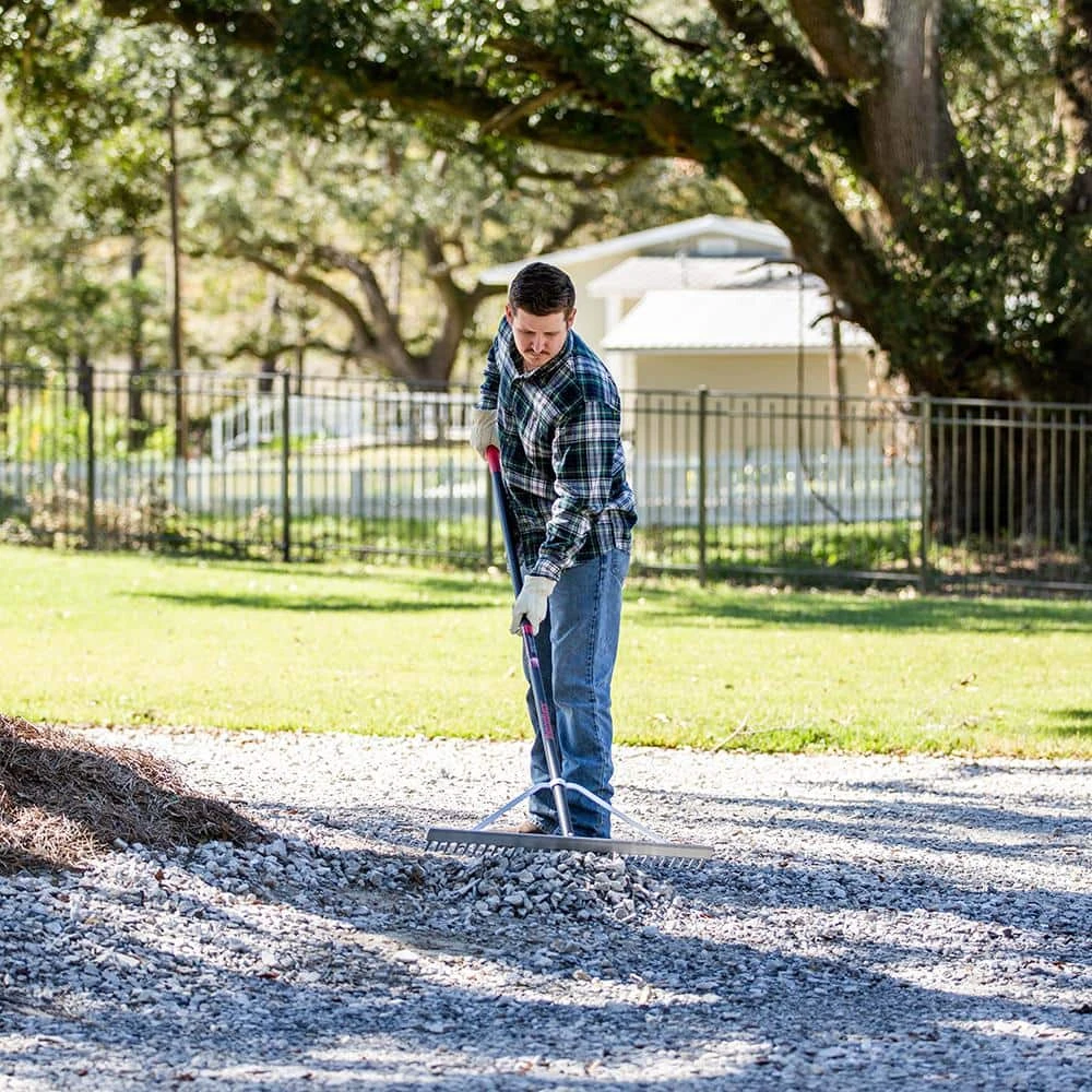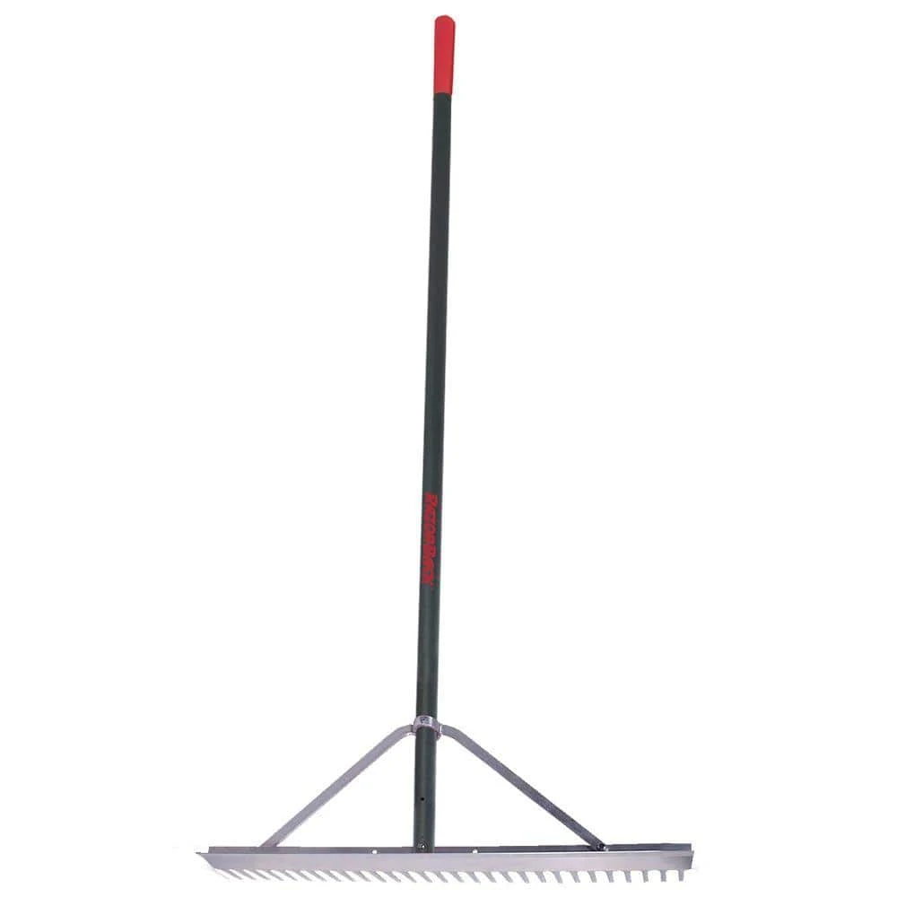 The Razor-Back aluminum landscape rake is designed with a wide head to level quickly and smoothly. The aluminum head is light weight despite its size. It is a heavy duty rake that is great for contractor and professional use, as well as serious homeowners.