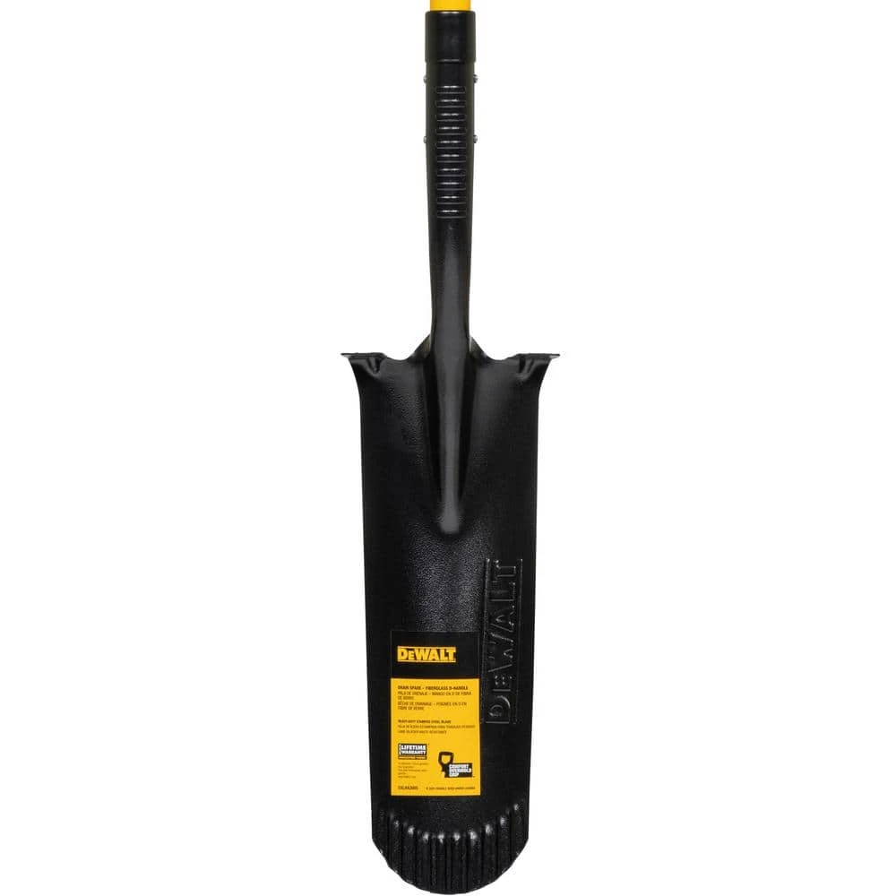 Dig deep and narrow trenches with the 32 in. Fiberglass D-Handle Drain Spade. Meticulously tested for reliability and performance, this heavy-duty drain spade features a 16 in. high-endurance, beveled blade made of carbon steel featuring a long-lasting, multi-step hammertone finish. Its compact size is convenient to store so your garage or workshop stays organized. Tackle almost any gardening, landscaping, and lawn job with a steady hand thanks to the durable steel power collar and forward turned punch embossed power stepper. The dual stainless steel rivets tightly attach the blade to the heavy-duty weather resistant fiberglass handle, which was designed to reduce knee and back strain during extended use. When extra leverage is needed, you can use both hands thanks to the overmold ergonomic D-Grip.