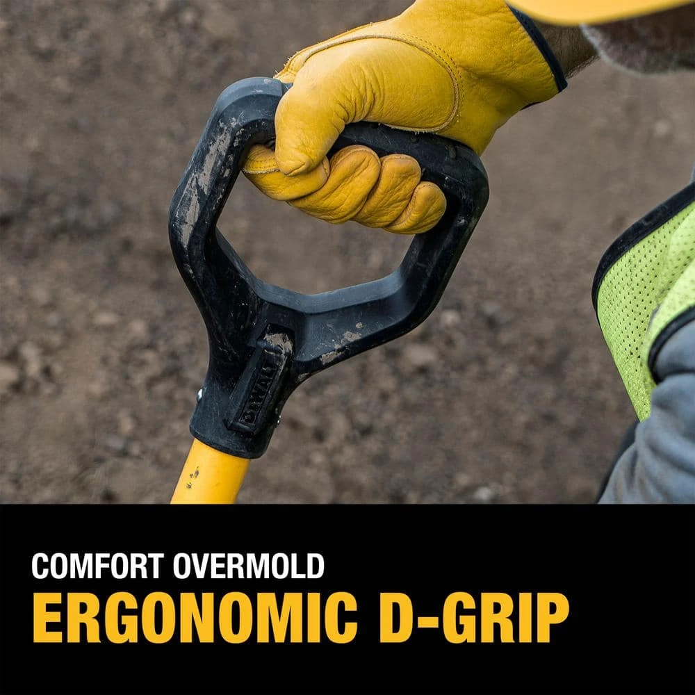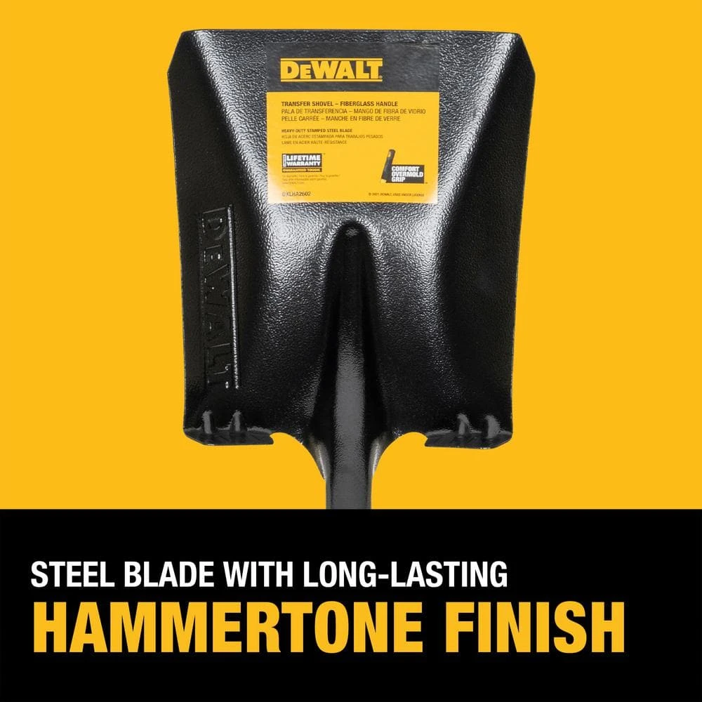 Swiftly lift and move loose gravel, rocks, and sod with this 32 in. Fiberglass D-Handle Transfer Shovel. Expert-tested for ruggedness, this transfer shovel with heavy-duty carbon steel blade features a multi-step hammertone finish that was built for longevity and reliability. Storage is convenient thanks to its compact design. The extra-large forward turned punch embossed power stepper and steel power collar deliver the support and strength needed to power through almost any job, while the dual stainless steel rivets tightly connect the blade to the handle for high-grade durability. Engineered to decrease the strain on your back and knees during extended use, the heavy-duty weather resistant fiberglass handle and overmold ergonomic D-grip provide additional leverage and an optimized hold.