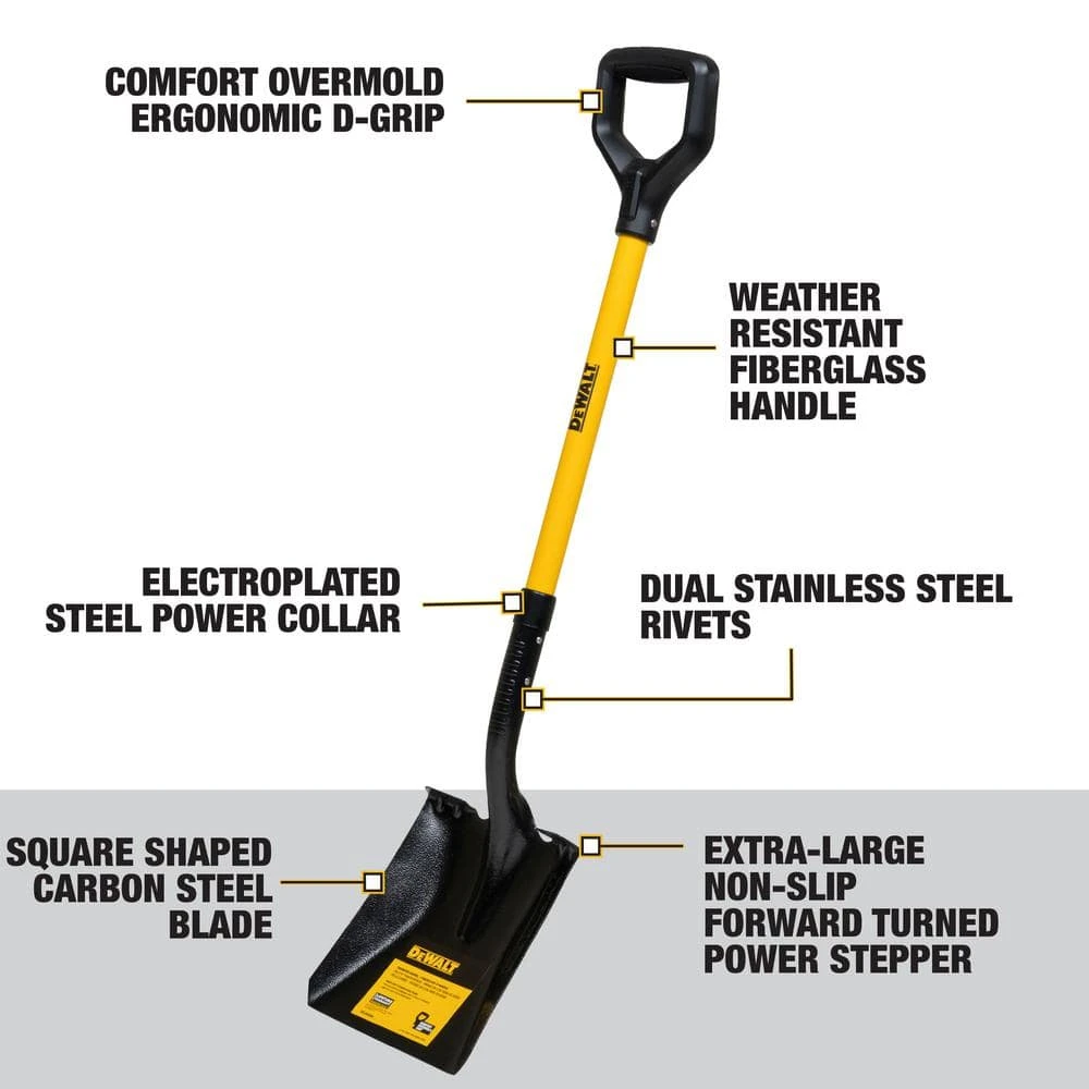 - PRO-GRADE STABILITY AND PERFORMANCE: Dual stainless steel rivets and electroplated steel power collar attach the blade socket to heavy-duty weather resistant fiberglass handle