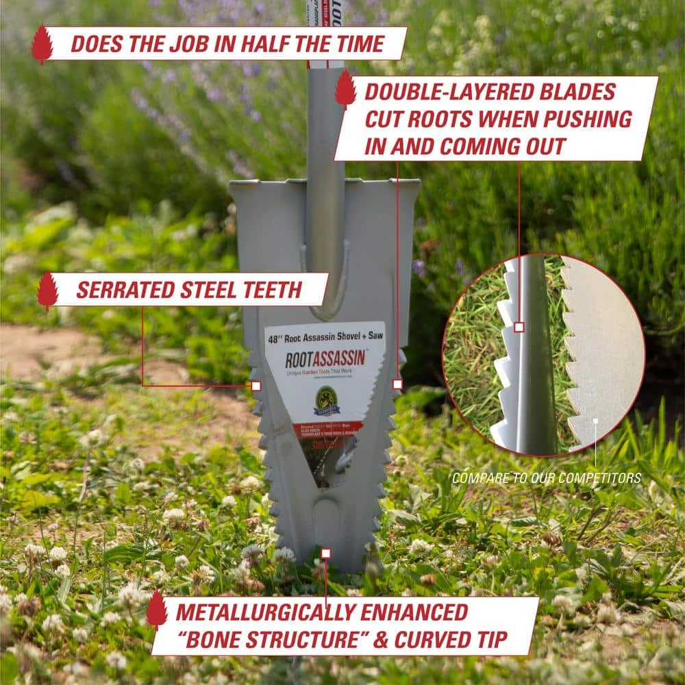 - Root Assassin serrated shovel with enhanced shovel shaped and curved tip