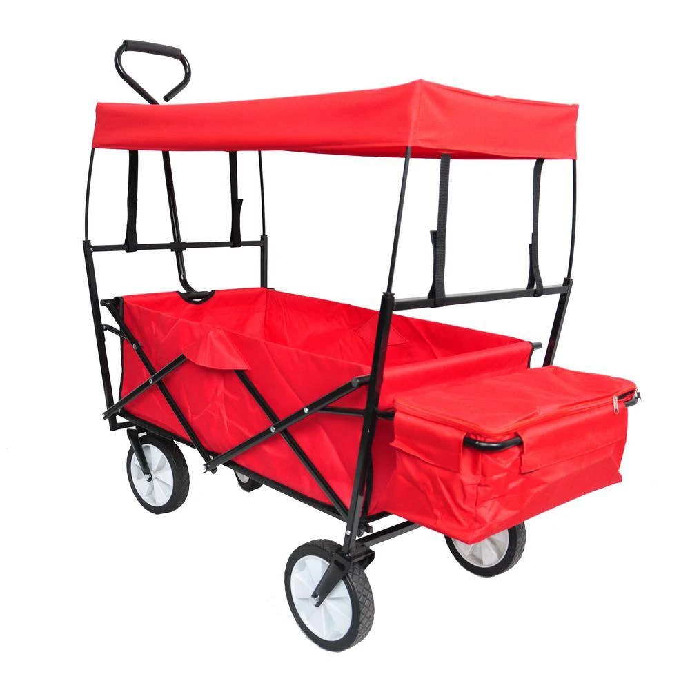 No matter the scenario, this utility cart can handle it. From toys and groceries to everything in between, go with the Folding Outdoor Cart and lighten your load. Folding cart is strong and durable. with steel frame and 600D PVC fabric, it can support up to 150 lbs. (about 68kg). The detachable roof provides a sun shade for your children or pets when riding in the car, protecting them from rain and harmful ultraviolet rays. This 4-wheeled vehicle can pull-the front wheels can rotate 360ยฐ. Let you easily bypass obstacles. Solid structure, adaptable terrain asphalt pavement, cement pavement, soil pavement and grassland pavement. This foldable cart is very portable and can be folded and stored in the trunk of your car, wardrobe or garage when not in use. When you need it, you can pull it out to play. Take your child to the park, go to the local farmer’s market, work around the garden or courtyard, have dinner on weekends, go shopping, have a music festival or travel to the beach. It can be put in the trunk of your car to help you finish your tasks outdoors at any time. Buy quickly. Lighten up your load and utilize this versatile cart for your everyday needs.