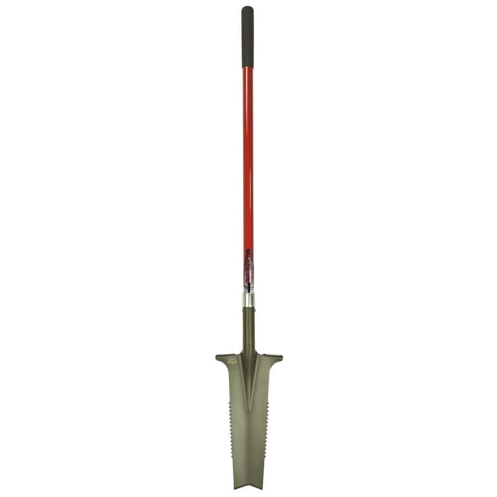- Root slayer shovel with an inverted v-shaped cutting tip to rip through hard-packed dirt and roots