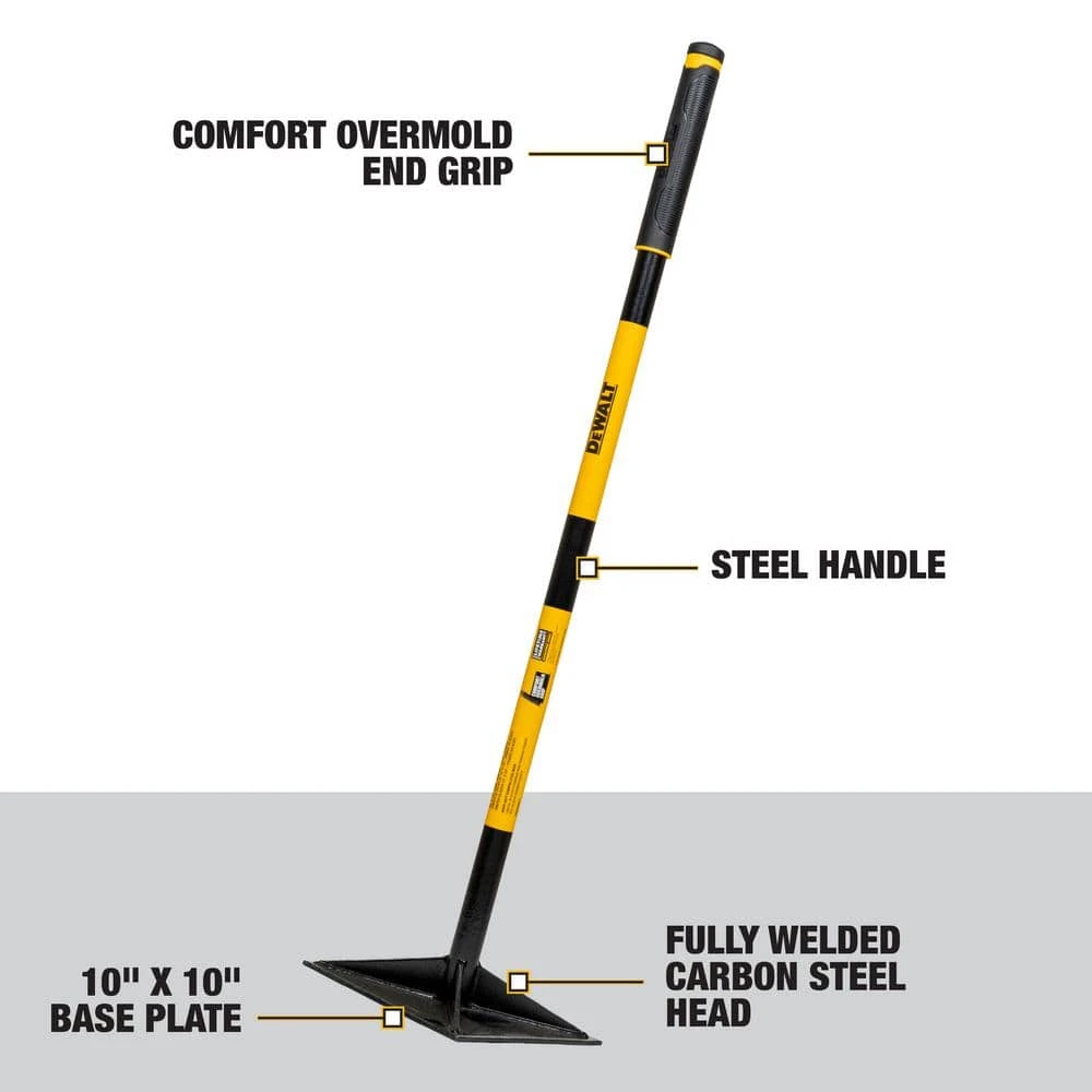 Meticulously tested for real-world toughness, this rugged 10 in. x 10 in. Steel Tamper swiftly compacts and levels a variety of materials. Efficiently pack dirt, soil, sand, gravel, and more with this multi-utility tamper, which is also great for finishing concrete and asphalt surfaces. The all-steel head and handle power through almost any job and offer long-lasting durability while the soft-touch overmold end-grip provides comfortable two-handed handling during prolonged use.
