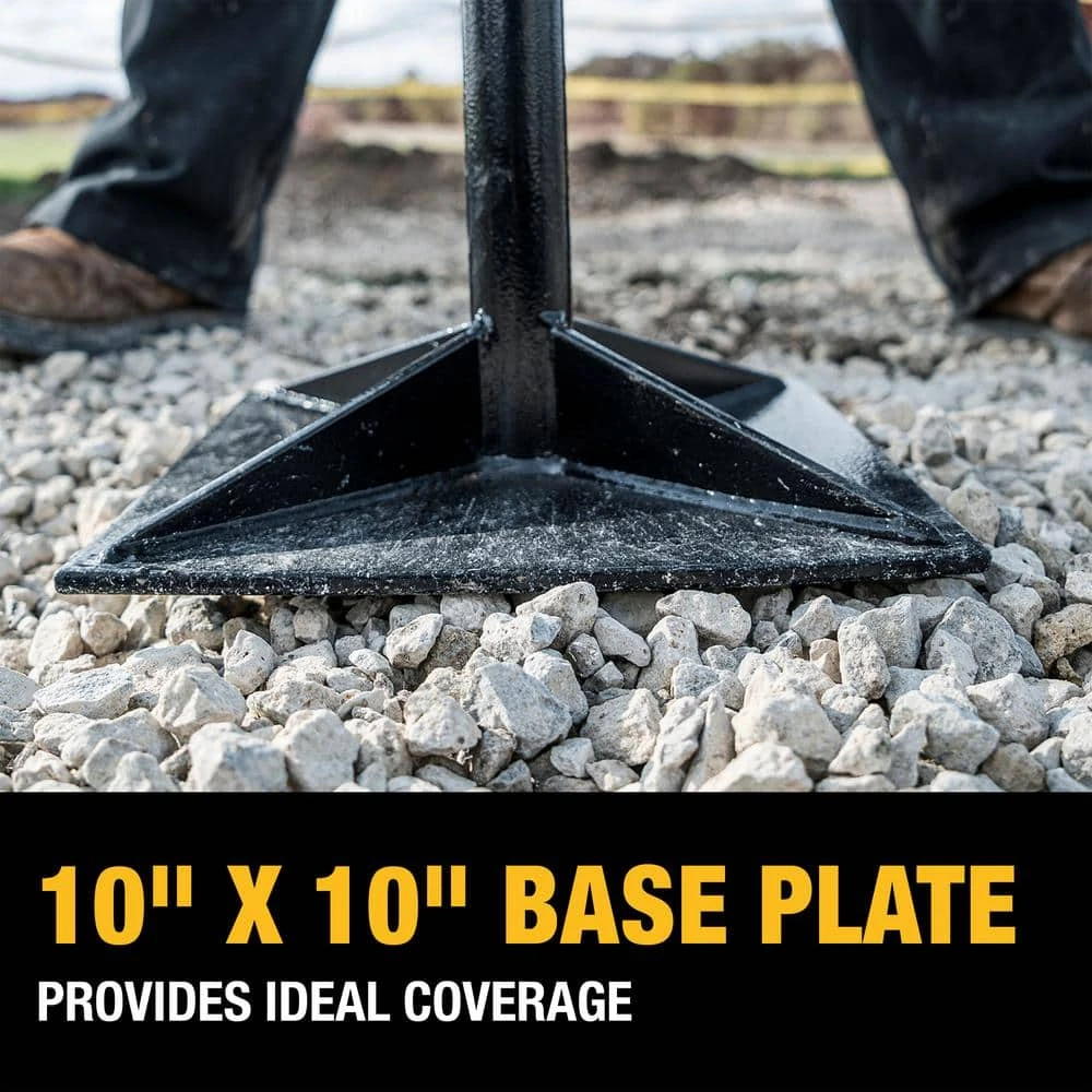 - POWERS THROUGH TOUGH AND RUGGED MATERIAL PACKING AND LEVELING JOBS with its heavy-duty, carbon steel base plate
