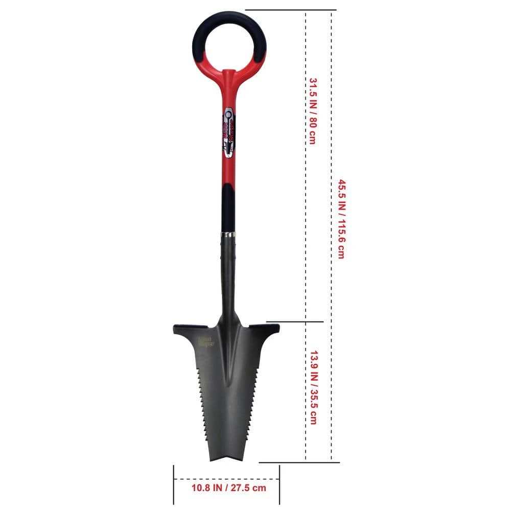 - Saw-like digging shovel for easily ripping through roots and dirt