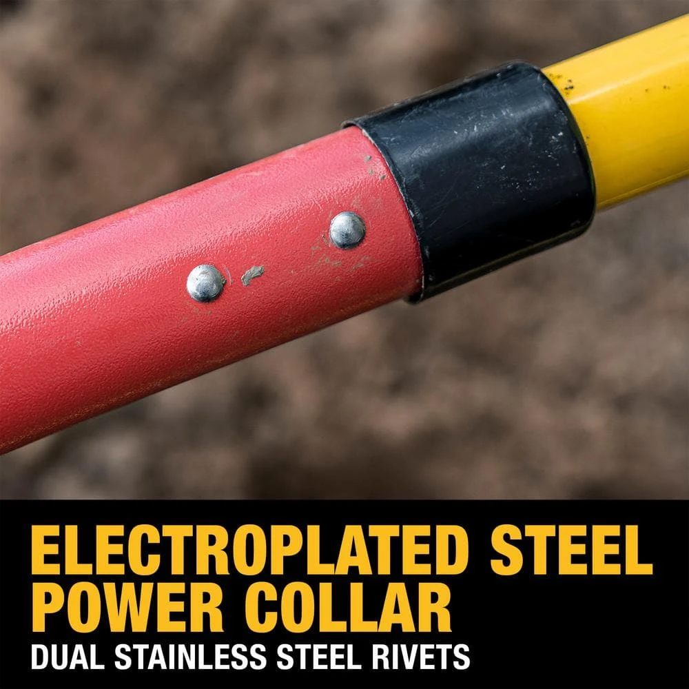 - PRO-GRADE STABILITY AND PERFORMANCE: Dual stainless steel rivets and electroplated steel power collar attach the blade socket to heavy-duty weather resistant fiberglass handle
