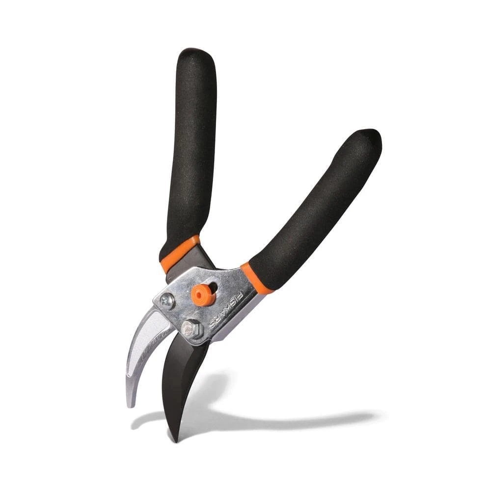 Trim tough, sticky stems and branches with the Fiskars Bypass Pruner 2-pack. Offering a precise, clean cut, this pruner has an ambidextrous design and cushioned comfort grips for slip-free use. It features non-stick coated, hardened-steel cambered blades for a long-lasting, durable use.
