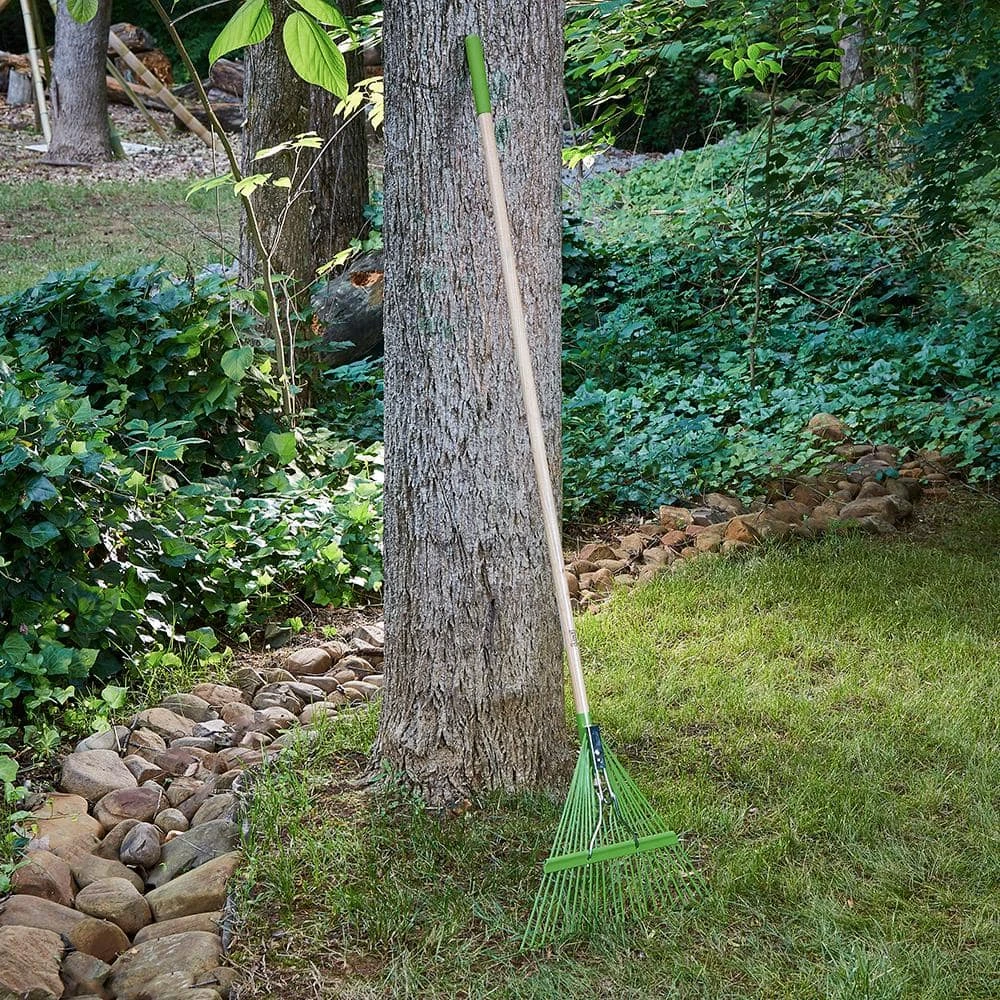 The Ames 22-Tine steel leaf rake is used for clearing leaves and debris from lawns and paved surfaces such as driveways and sidewalks. This rake can also be used for pulling out thatch for a healthier lawn. The steel head is bolted to the handle with a strong coil spring for a secure connection and smooth raking action.