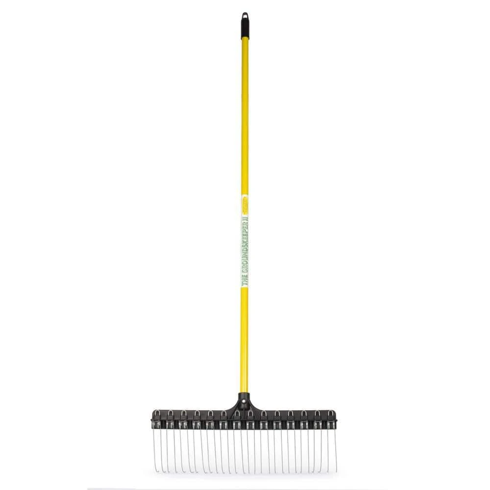 - Unlike your average rake, the round and stiff tines of THE GROUNDSKEEPER II work differently than the flat, flexible plastic tines of other rakes by digging in requiring no down pressure and allow you to rake standing up taking pressure off your back