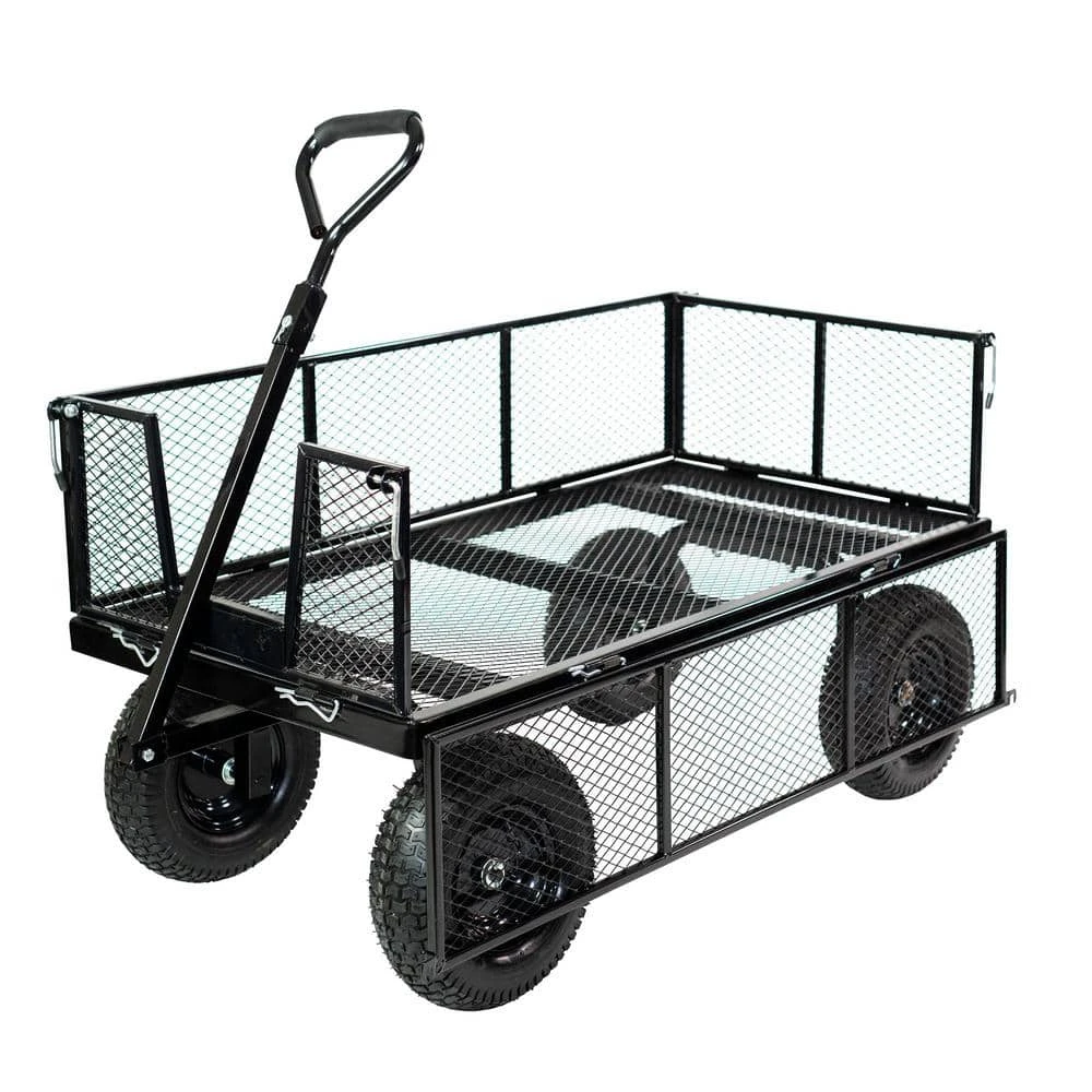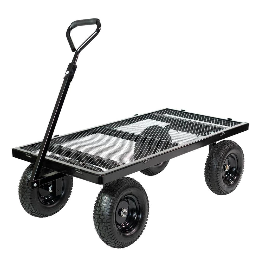 This utility cart is ideal for plants, tools and supplies around the yard, garden or greenhouse. The pneumatic tires, easy steering mechanism and foam rubber grip aid in maneuvering. This multi-purpose Utility cart can hold up to 1000 lbs.