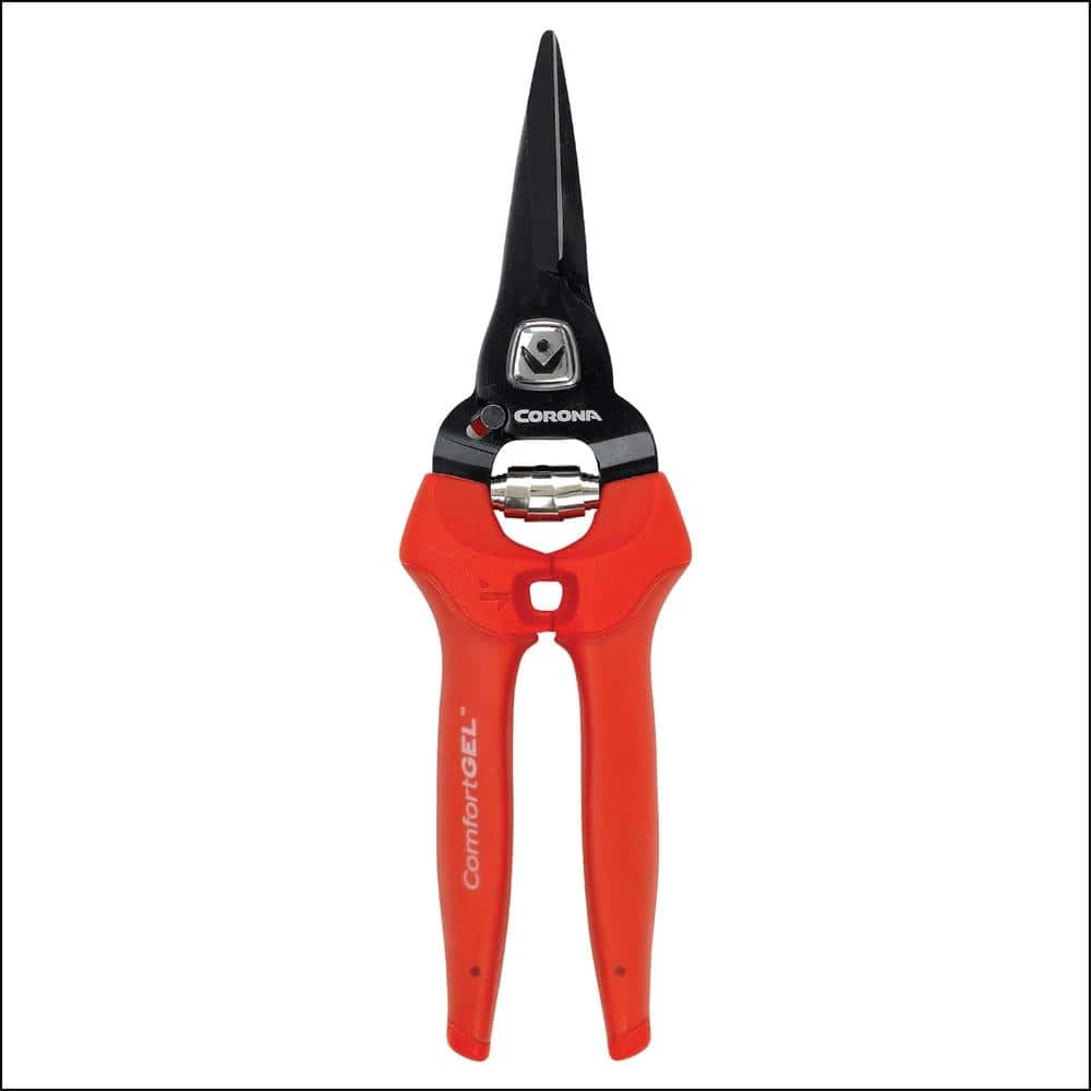 Easily harvest and trim flowers with the Corona Tools ComfortGEL Floral Snips. Featuring 1ยพ-inch non-stick blades and a lightweight body, these garden scissors offer enhanced cutting performance within a convenient and easy-to-use design. Their ComfortGEL grips help ensure superior comfort and reduce hand fatigue, while their built-in wire cutter and thorn stripper eliminate the need for multiple floral tools. Make gardening and floral arranging quick and enjoyable with the Corona Tools ComfortGEL Floral Snips.