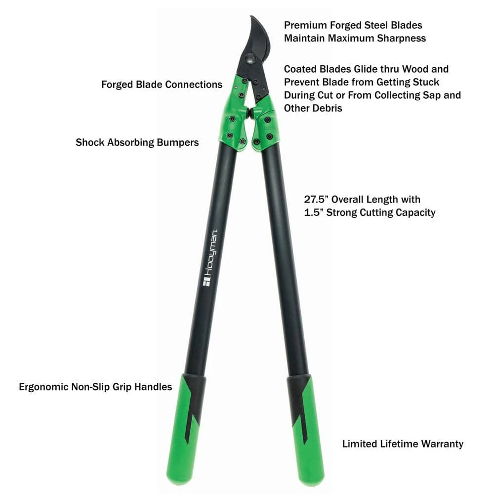 Hooyman has developed the strongest most dependable Loppers on the market with the forged blades and connectors you can now power through thick branches clean and quickly while the forged blades stay sharp, even through heavy use and cuts branches up to 1-1/2 in. Dia main. Hooyman tools are designed to be the strongest on the market with a modern aesthetic ergonomic design. Featuring the comfort non-slip H-GRIP handle deliver a comfortable and secure grip allowing for extended use to conquer any size project providing all-day comfort. Hooyman Tools are truly unique in quality, comfort and performance.