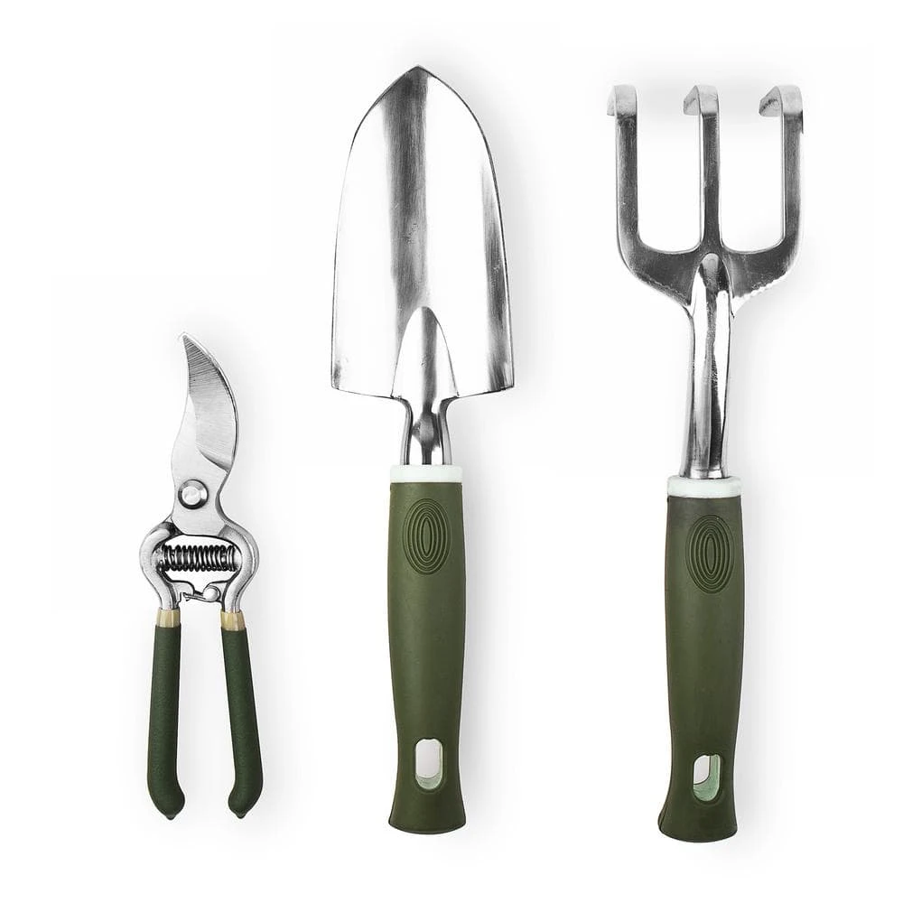 THIS APOLLO GARDEN TOOL SET HAS IT ALL: This garden tool set will delight any gardener. It is a great value that includes a well-designed apron with plenty of pockets for tools, seeds or a cell phone; a comfy foldable kneeler that doubles as a seat and 3 of the most used tools: a trowel, a rake and a pruner. THE APRON WE ALWAYS WANTED. The apron is ample, not too long or too short, sturdy but with breathable cotton fabric. The long tie fits various waist sizes, has a closeable large pocket so that cell phones and small objects don’t fall off when bending forward and deep reinforced pockets that wont tear out even when sharp tools are used. A VERSATILE KNEELER AND SEAT. The 2-in-1 kneeler/seat is foldable, padded and can be used to kneel or to sit while gardening. The seat holds up to 265 lbs. When in the kneeling position, the sides help you get up easily from the ground. The kneeler is equipped with a multi-pocket garden pouch for extra-storage for tools, seeds, a water bottle and more.