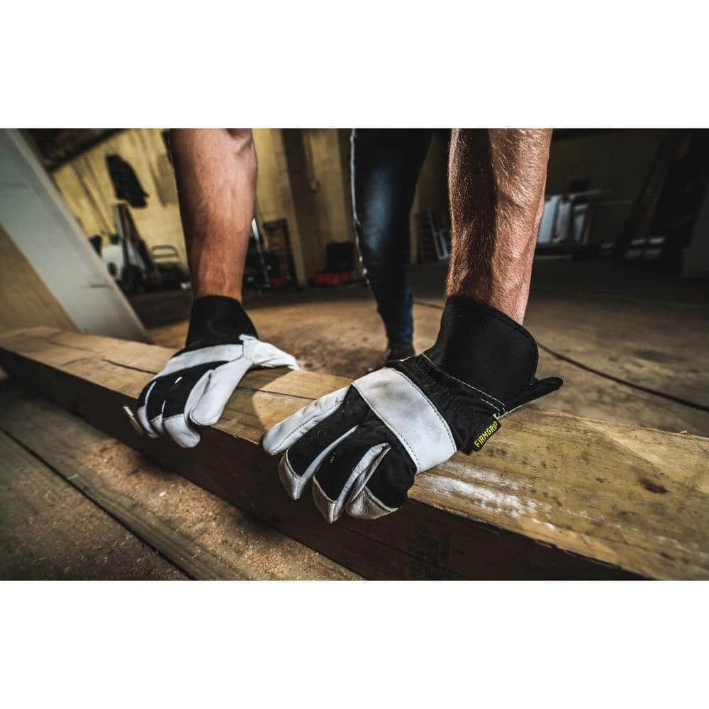 Firm Grip Goatskin Leather gloves offer premium comfort while remaining tough enough for demanding jobs. 100% Goatskin leather palm is lightweight, soft and abrasion resistant for maximum comfort and performance. The extended safety cuff provides additional coverage and protection to the wrist and forearm. Excellent for projects where you need dexterity.