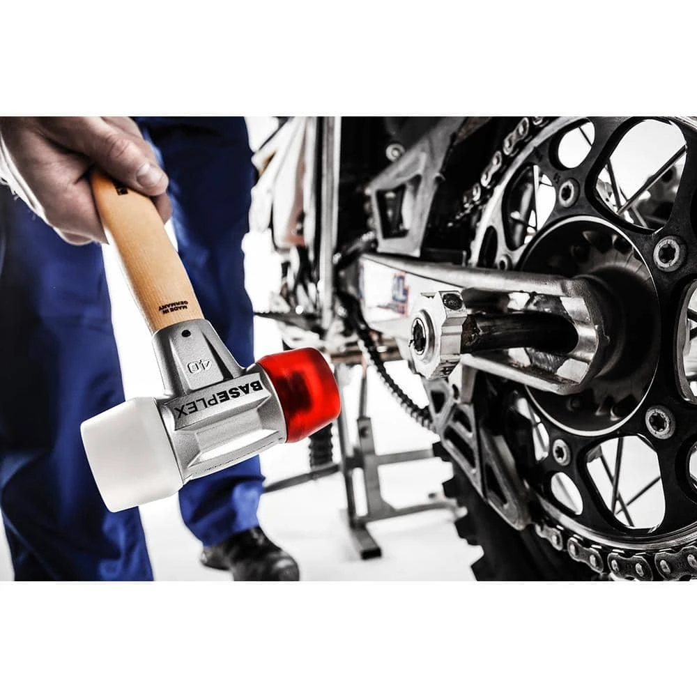The Halder Baseplex mallet is a great all-around non steel hammer. Its faces consist of a red medium/hard acetate plastic material and a hard, white nylon which makes it a versatile hammer, perfect for many applications. It also has a high quality and very durable Zinc die cast housing that helps ensure that you will have this hammer for a long time. The faces can be replaced when worn out. This hammer is great for many different jobs such as, light construction, hobby and craft work as well as manufacturing and industrial applications. The Baseplex is also safer than a traditional hammer due to the fact that it can be dangerous to hit steel on steel. Steel on steel hits can cause sparks as well as flying metal fragments. This hammer will not mark or mar the objects you are hitting. You will find a ton of different jobs for this handy striking tool.