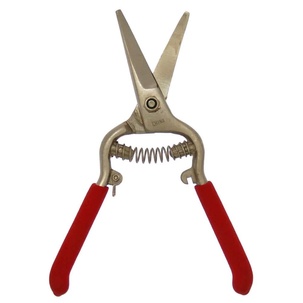 The Zenport Z280 forged harvest shears. The shears are traditionally used for field harvest and thinning applications. Blades and handles are constructed of forged steel for long lasting durability. Red cushioned handles provide a comfortable grip and controlled cutting. Blades lock closed with a safety hook when not in use. Overall length of 8 in. Box of 3.