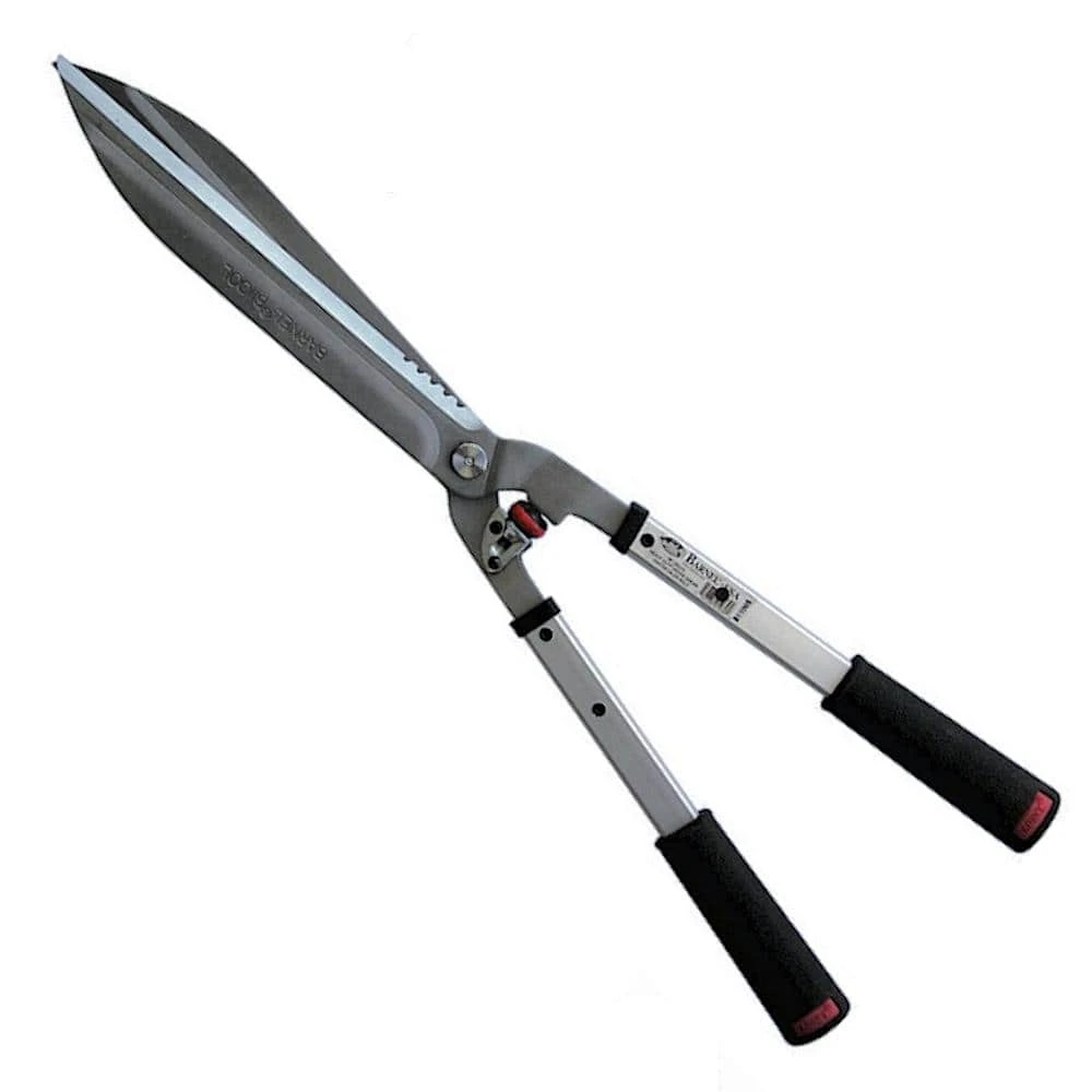 Bring professional quality and performance to your work site with this 24 in. Professional Straight-Blade Hedge Shear. They include a deep sap groove, cushioned handles and hard chromed high carbon steel straight blades, which are serrated at the base. The innovative self-oiling center bolt ensures smooth cutting action and reduced maintenance. They are constructed with heavy-duty aircraft aluminum and are especially designed for all-day use by landscape professionals.