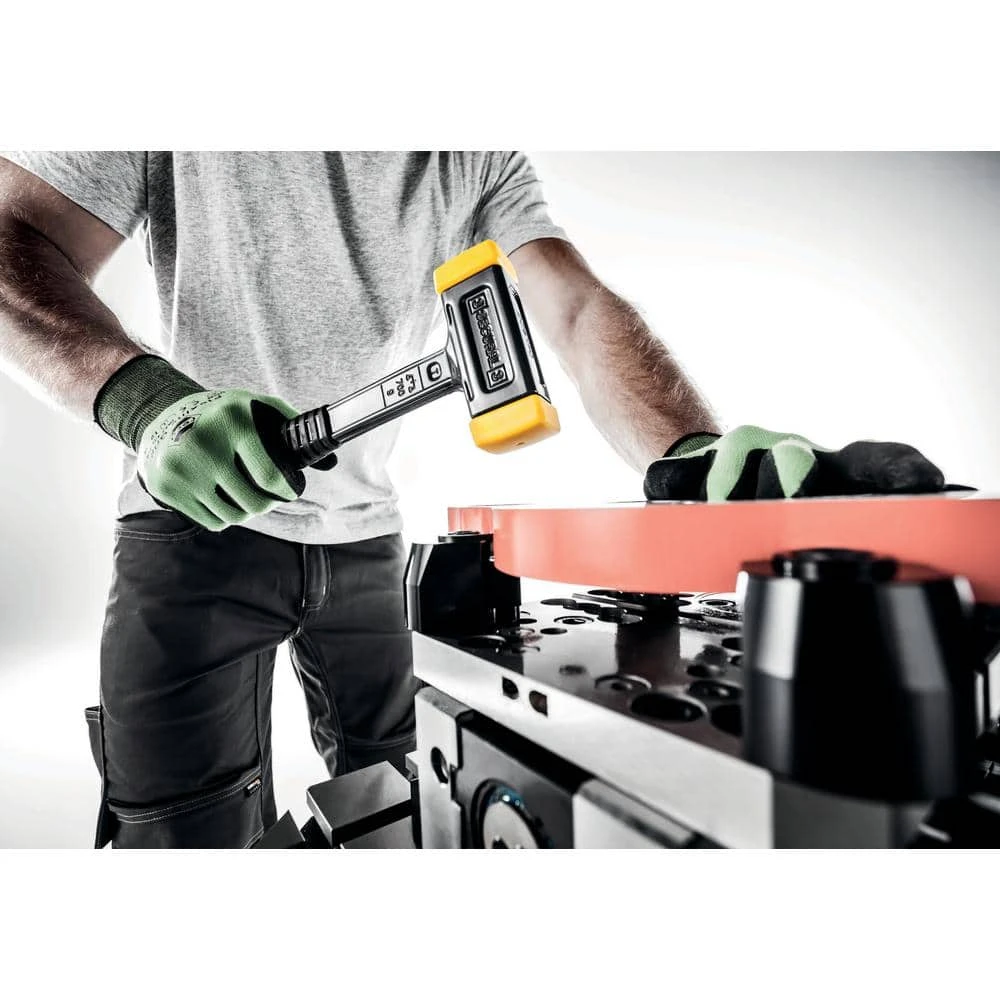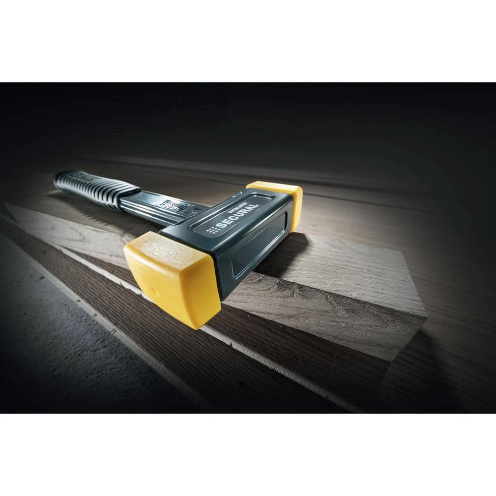 The Halder Secural is a 1 of a kind patented dead blow hammer made of 1-piece of thick sheet metal. The sheet metal is folded and welded to make an extremely durable hammer head, handle and shaft. What also makes this hammer unique is that it features 2 rectangular polyurethane faces. The rectangular faces allow the hammer more striking area in tight squared off spaces. This is perfect for inside of window trim, tool and die work, automobile repair, flooring work or anywhere a dead blow is needed. The polyurethane faces are grease and oil resistant and can be replaced when worn.