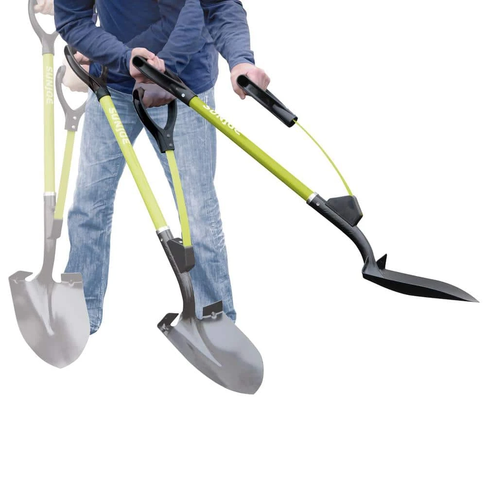 Dig in and give your back a break in the yard garden and shovel smarter – not harder. No more heavy lifting or lower-back strain with the Sun Joe Shovelution 44 Round Point Utility Digging Shovel. The rugged, forged steel point 9 in. blade easily pierces both sod and soil, while the ergonomically designed spring-assist handle sends lifting leverage to the lower hand to easily lift heavy loads of dirt and mulch or dig up shrubs, plant trees and cut trenches with minimal effort. Shovelution greatly reduces the effort, strain and potential injury involved in shoveling, using the powerful muscles of your upper body to do the lifting and throwing to reduce back strain by up to 30%, so you can lift more and throw farther. Just spring it and fling it. SHOVELUTION captures the expended energy from throwing sod and soil and rapidly recoils to instantly reset the shovel, ready for the next load. So, get a handle on your garden chores and Go With Joe and dig in with the ultimate strain-reducing shovel.