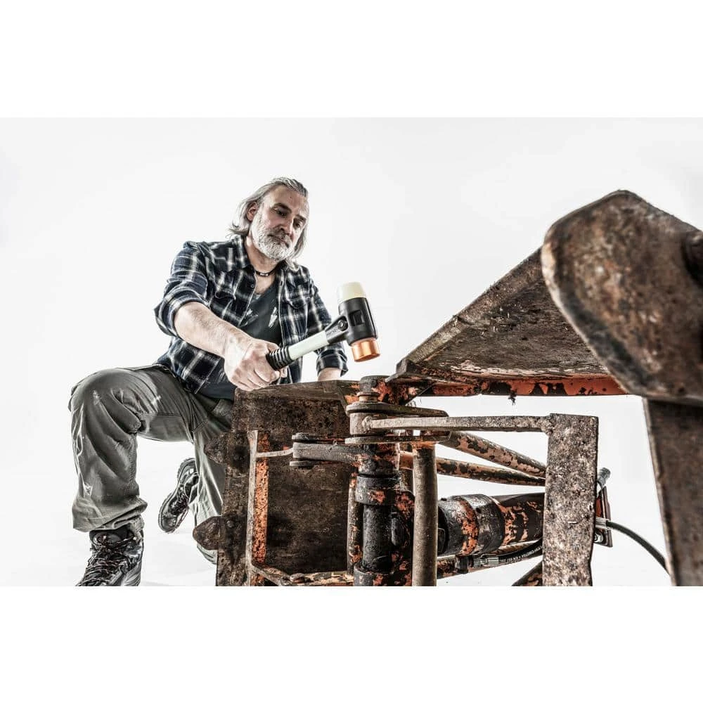 The Halder Simplex Mallet is the signature hammer in the Halder line. This patented hammer has a split housing design that is made from Heavy-Duty cast iron. This split housing allows it to be take apart and the components can be replaced when worn or damaged. It solidly locks in the variety of replaceable insert faces. The faces are made of several different durable materials; from soft rubber to medium hard plastic to hard nylon. Halder also offers aluminum and copper faces for hitting very hard surfaces such as hardened steel (copper faces are only compatible with Halder Simplex with reinforced cast iron housing; call for details). The variety of face materials and sizes allow the Simplex to be used in many applications such as manufacturing, automotive, landscaping, furniture making, flooring and machining just to name a few. The Simplex features the highest quality hickory handle which is protected by an extra-large overstrike area formed by the cast iron housing. This truly is a durable hammer and will be with you for many years.