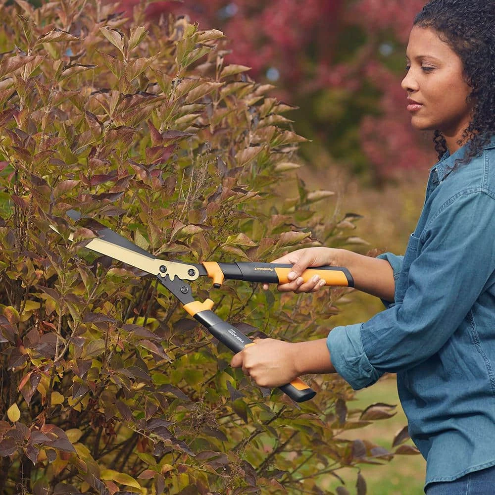 Fiskars powerful shears make shaping and trimming hedges and shrubs easier than ever. Lifetime warranty, PowerGear patented gear technology multiplies leverage to give you up to 3 times more power on every cut. The tough steel construction with riveted handles offers lasting durability.