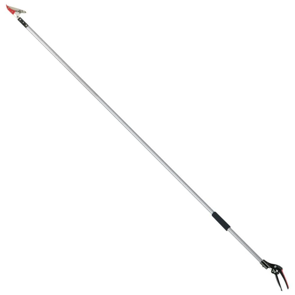 Trim and prune out-of-reach stems and branches with this Barnel B188F7 fixed-length 6-1/2 ft. cut-and-hold pruner. The Ultra Reach series pruners feature light-weight, sturdy aluminum construction. The unique cut-and-hold feature uses a spring mechanism to automatically adjust to varying cut diameters, but may be removed if desired. The rubberized handle can rotate 180° on the pole when needed.