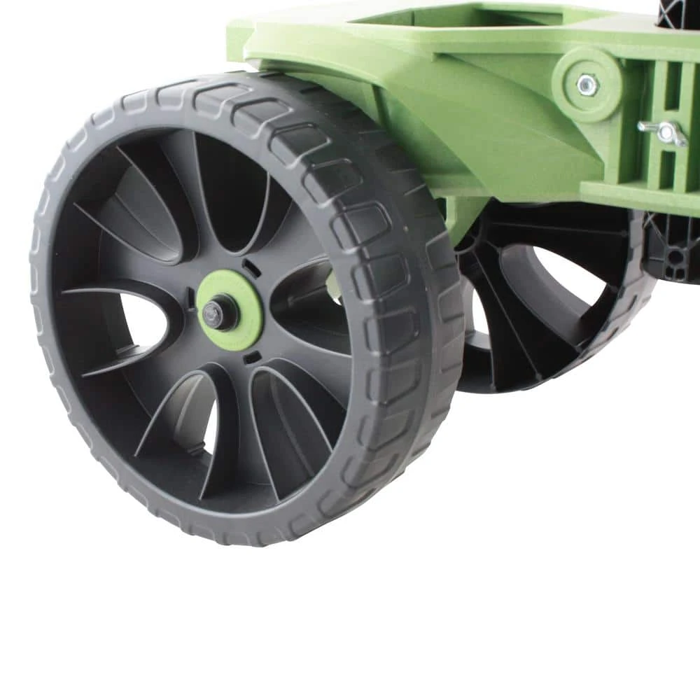 - 10 in. never flat tiers never need air and with a 3 in. W are large enough to roll over some of the roughest of terrain in the yard, garden, lawn and more, the wheelie scoot is a premium rolling garden cart with seat that is a excellent addition to your lawn and garden tools, the rolling garden seat with wheels helps support your body and back as you work